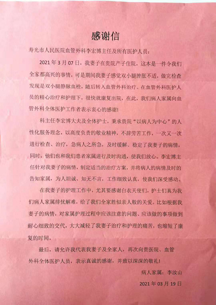 血管外科感谢信
