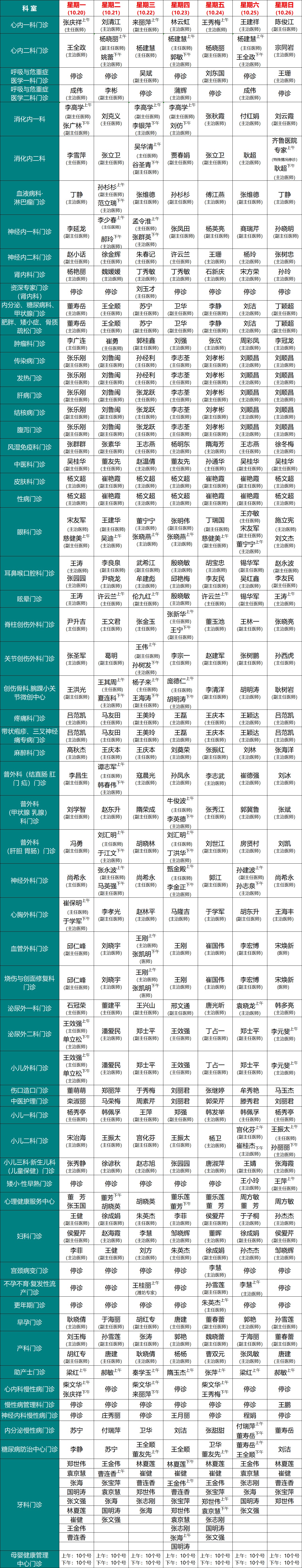 寿光市人民医院门诊医生坐诊时间一览表